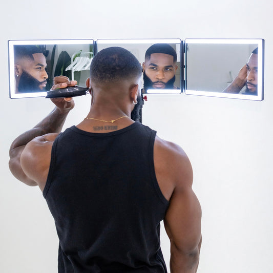 Self-Cut System Angel Lights Tripod 3 Way Mirror w/ Premium Cordless Clipper, Trimmer, and Shaver